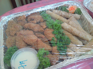 whooho , woke up in the morning receiving angbaos . mummy ordered mini buffet cos my gu ma & gu zang and my cousin will be coming over my house . the food was really delicious . i introduce to you all okayes ? i frgt the number but i kw the aunty name is aunty maggie ! :D