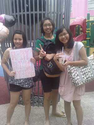 Hello Dearest ! :> Basically, Woke up early and meet all the fantastics at tampines1. Bought cake at icing room. Bought balloons. heh ! Then wait for birthday girl to come. Celebrated at open plaze park. heh ! Kallang next. Really love them man. Yeeling, Cheryl, Lisa, Siewloo, Lionell, JinFa, Matthiew, Shiguan, Alvin, Kenneth Fong, James & Yeeling's brother :> I had so much fun & most imptly, I hope Yeeling really had fun. We watched triple tap. haha awesome show. Arcade & east coast park. Played with water. Splashed all around. Really, Awesome, great, Perfect, Marvellous and cool people !